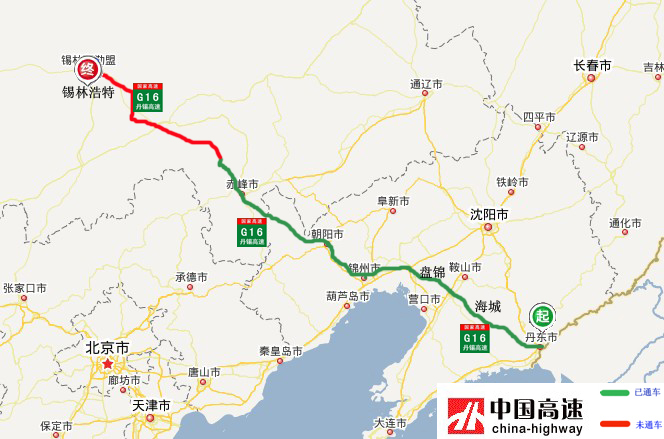 G16 丹锡高速 丹东—锡林浩特 丹东-海城-盘锦-锦州-朝阳-赤峰-锡林浩特 960公里